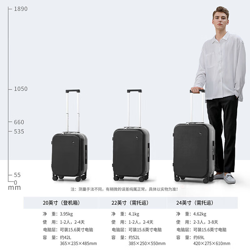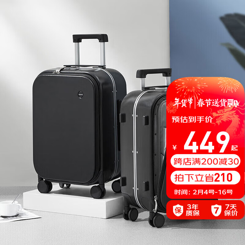米熙铝框拉杆箱子行李箱前开盖旅行箱包密码箱登机箱男20英寸黑色60价格:659.00元!