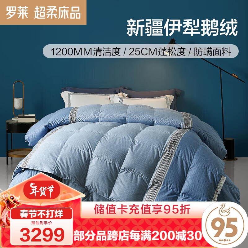 罗莱家纺 卡尔里特 95%鹅绒羽绒被二合一被子1200g 220*250cm价格:4499.00元!