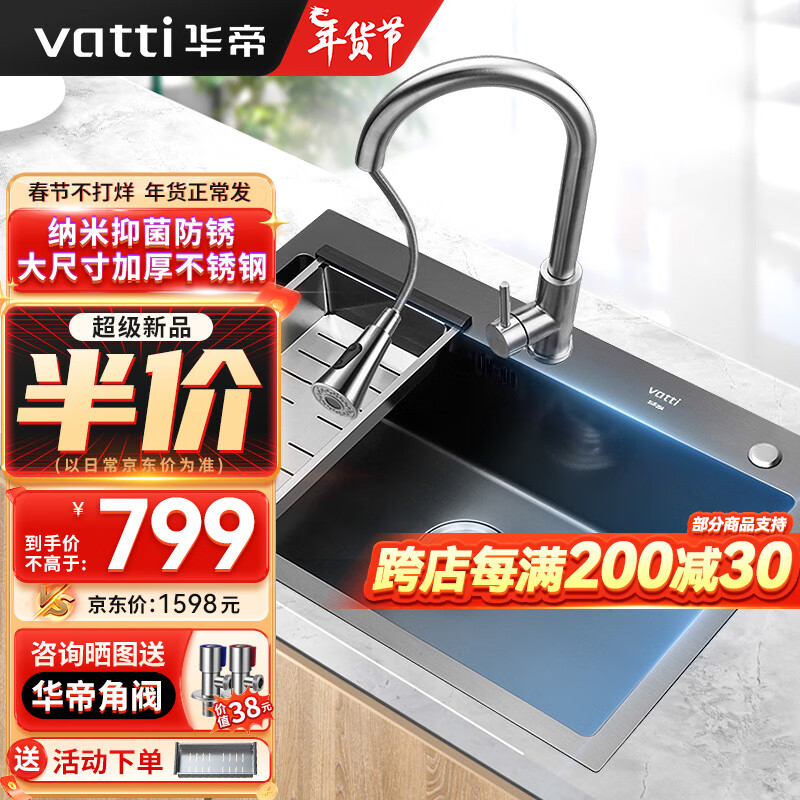 华帝(VATTI)厨房水槽大单槽洗菜盆一体盆 纳米304不锈钢 水池盘洗碗槽台下盆价格:1000.00元!