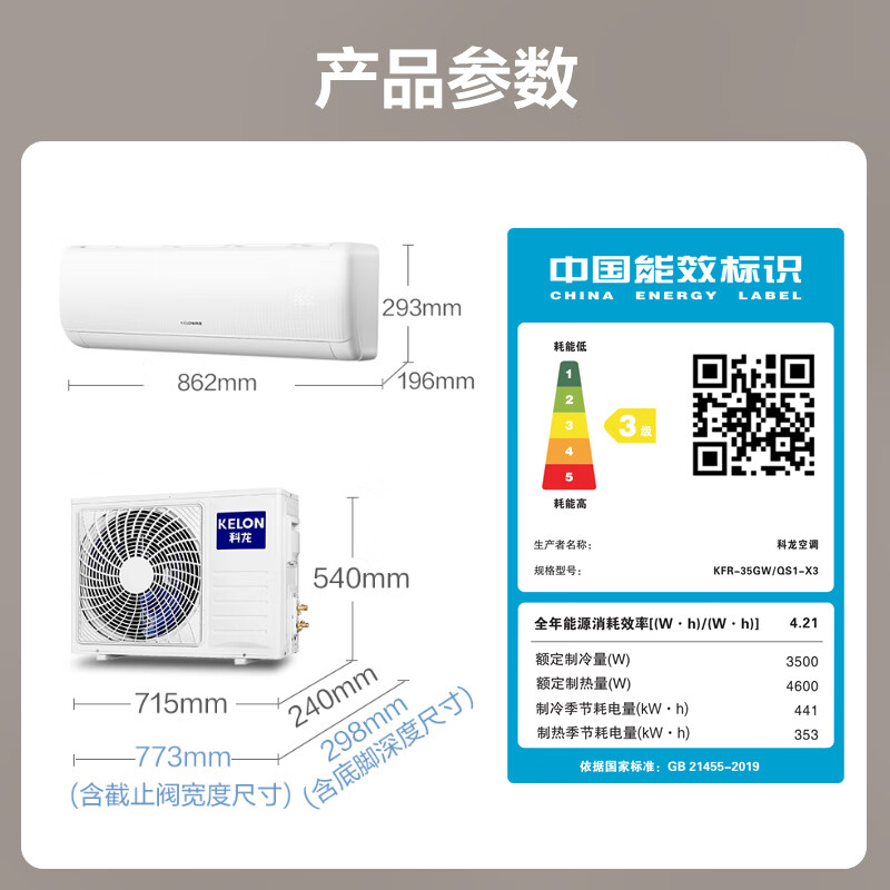科龙KFR-35GW/QS1-X3 (1V59)配置参数: