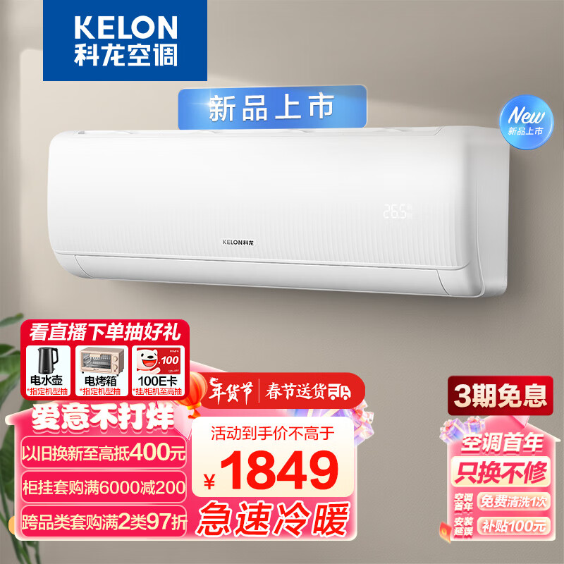 科龙空调 1.5匹 新三级能效 急速冷暖 变频省电 壁挂式挂机 卧室空调 KFR-35GW/QS1-X3价格:1849.00元!