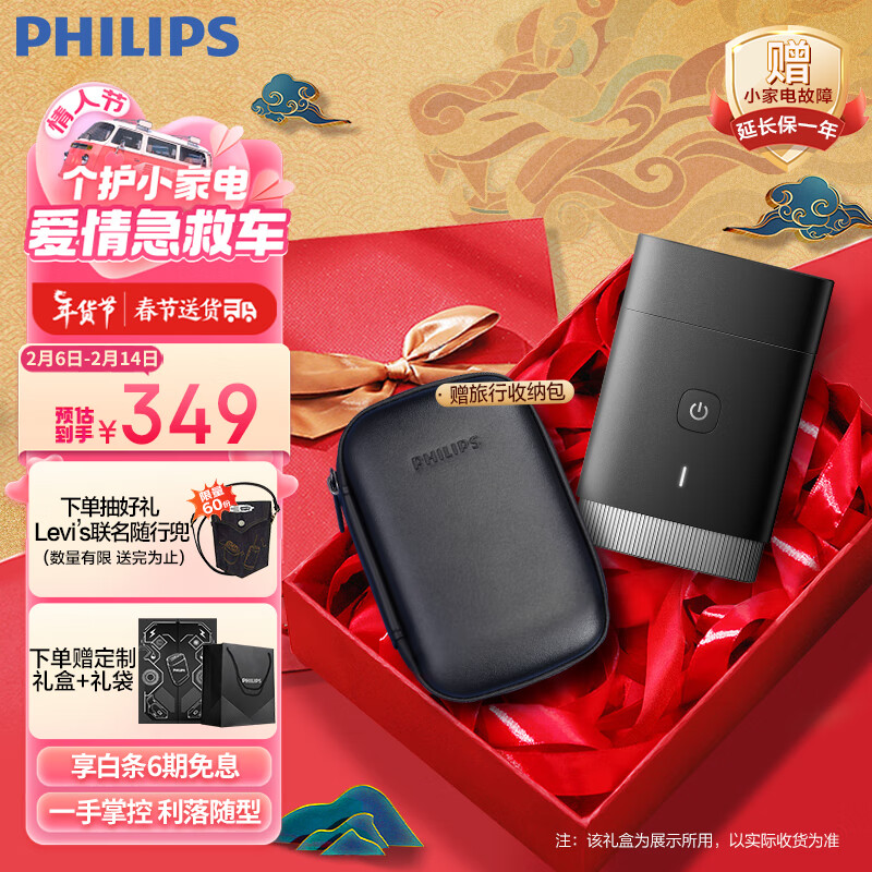 飞利浦(PHILIPS)迷你电动剃须刀黑魔方便携刮胡刀 新年礼物 情人节礼物 送男友 送老公价格:349.00元!