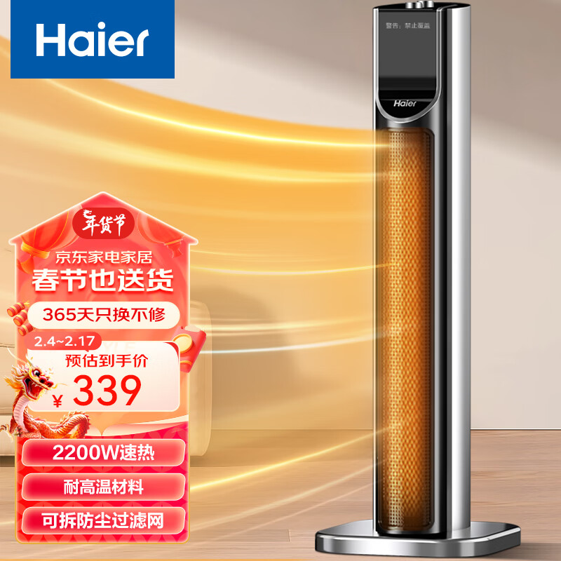 海尔(Haier)取暖器家用暖风机立式电暖器浴室热风机冷暖两用电暖风节能省电速热摇头电暖气烤火炉HN2210A价格:421.00元!