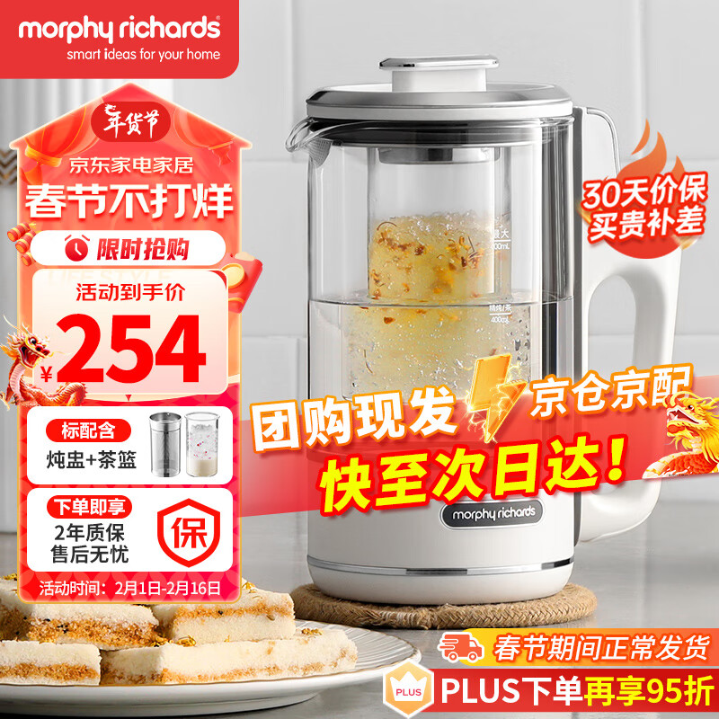 摩飞电器(Morphyrichards)养生壶 便携迷你煮茶器 烧水壶养生杯 小型办公室家用多功能煮茶壶一体式热水壶0.6L MR6086 白价格:254.00元!