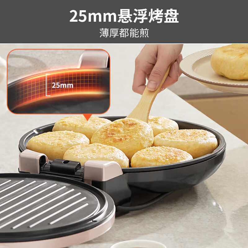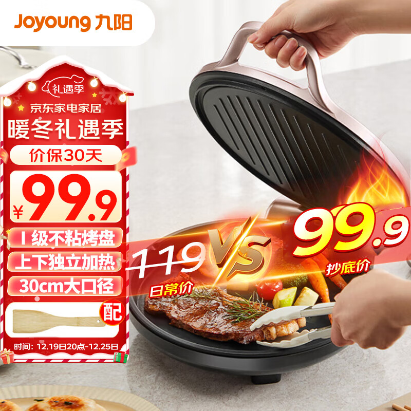九阳(Joyoung)电饼铛 家用煎烤机 25mm加深烤盘 大火力双面加热早餐机JK30-GK118价格:99.90元!