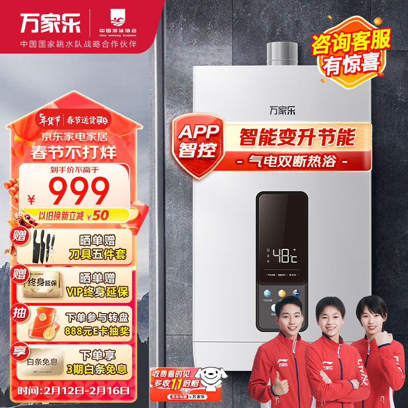 万家乐13升燃气热水器天然气节能省气智能变升恒温气电双断多重防冻低水压启动APP控制JSQ26-13DP3(F)价格:998.00元!