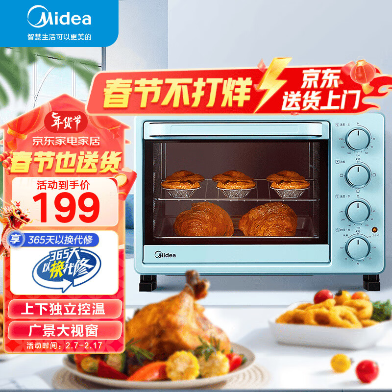美的(Midea)家用多功能电烤箱 25升 机械式操控 上下独立控温 专业烘焙易操作烘烤蛋糕面包PT2531价格:199.00元!
