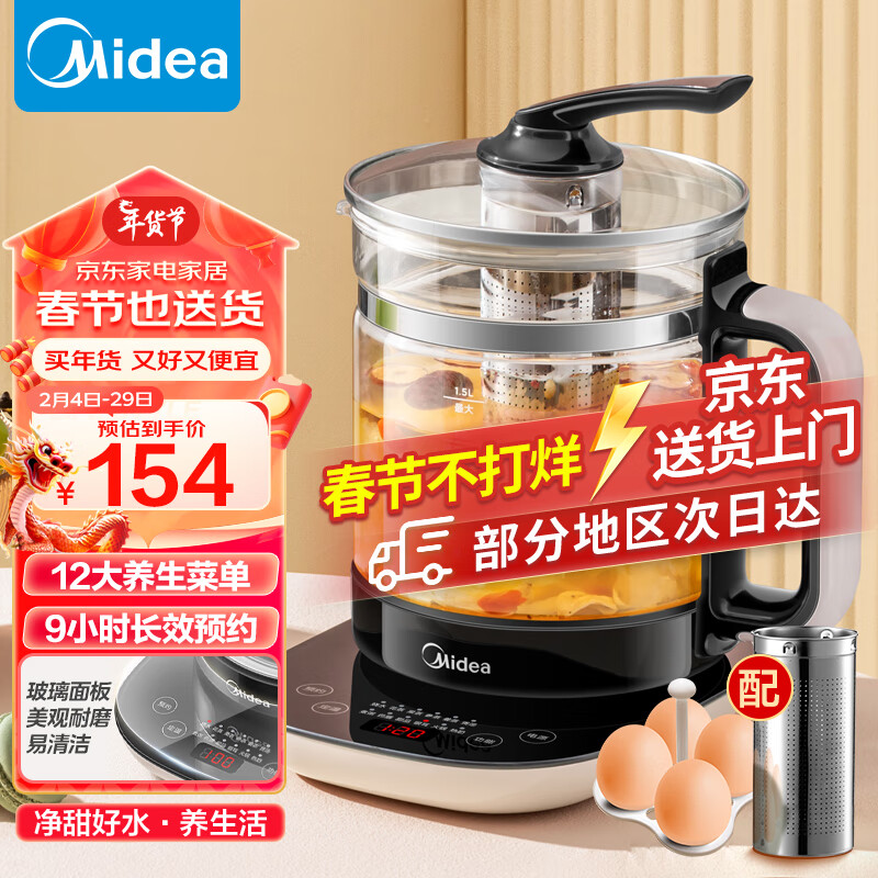 美的(Midea)养生壶 玻璃面板大口径煮茶壶 净润办公室宽口烧水壶 电水壶 花茶壶1.5L大容量 MK-YSNC1502价格:154.00元!