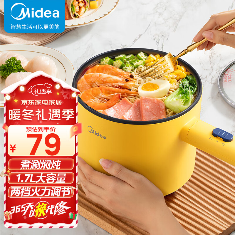 美的(Midea)电煮锅 1.7L小电锅 宿舍小锅 电热锅 学生宿舍泡面电火锅 多功能多用途 电蒸锅XZE1603-KS1价格:79.00元!