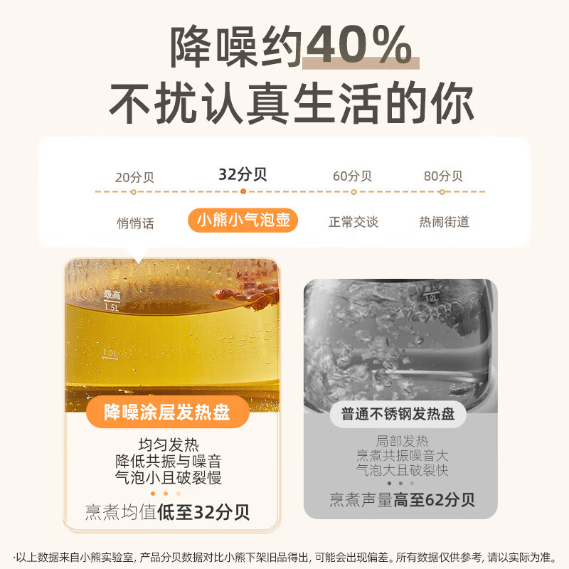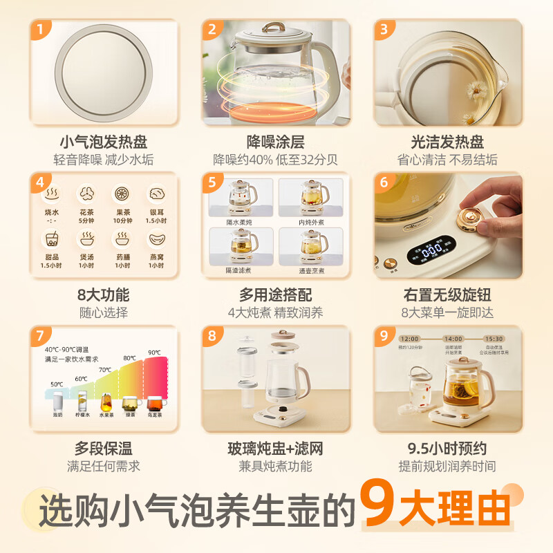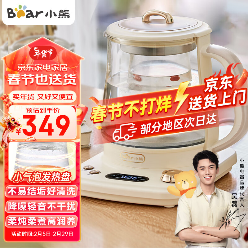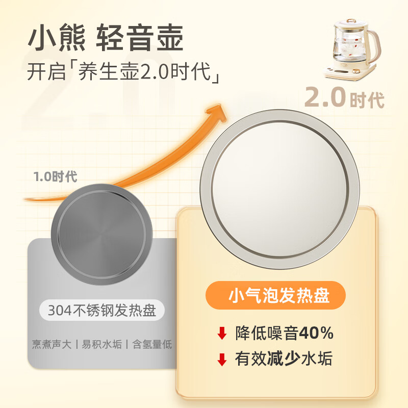 小熊(Bear)小气泡养生壶 烧水壶 1.5升家用恒温水壶煮茶器煮茶壶 降噪涂层 带玻璃炖盅 YSH-E15L7 玻璃花茶壶价格:349.00元!
