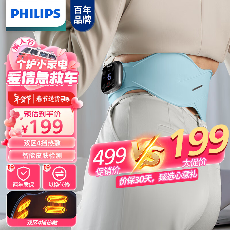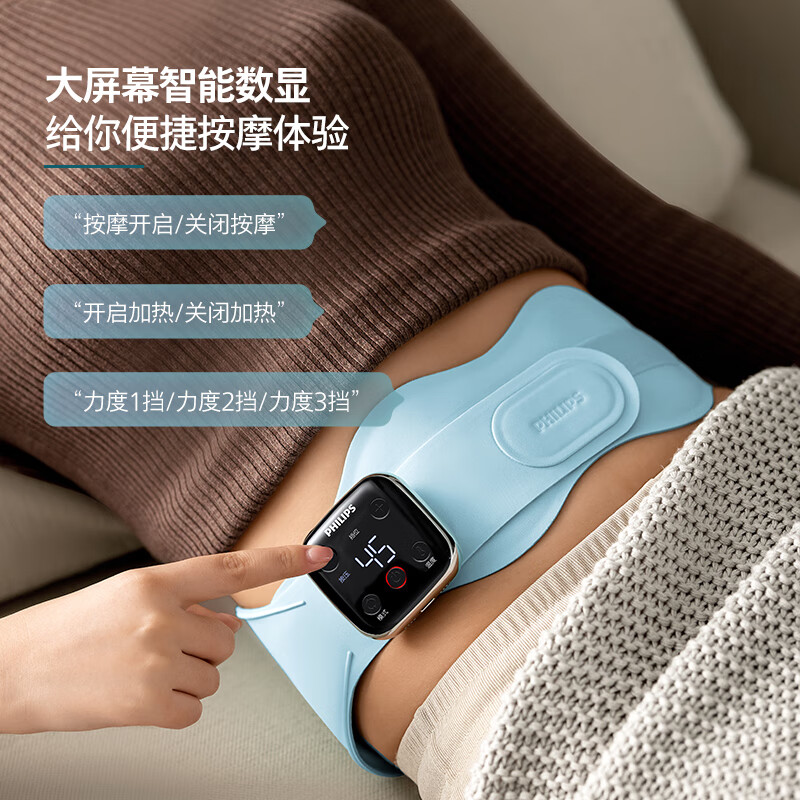 飞利浦(PHILIPS)腰部按摩仪居家办公热敷EMS按摩送女友老婆生日节日礼物按摩器5301B 浅蓝价格:221.10元!