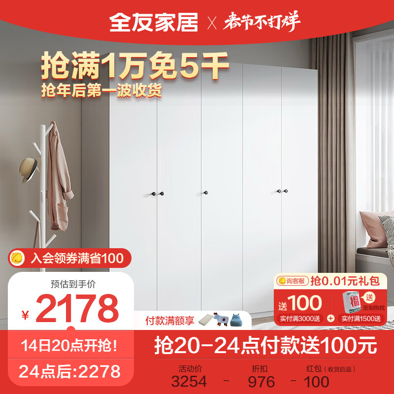 全友家居 衣柜简约风卧室衣物收纳纯色百搭多规格平开门家具DG10009价格:3254.29元!