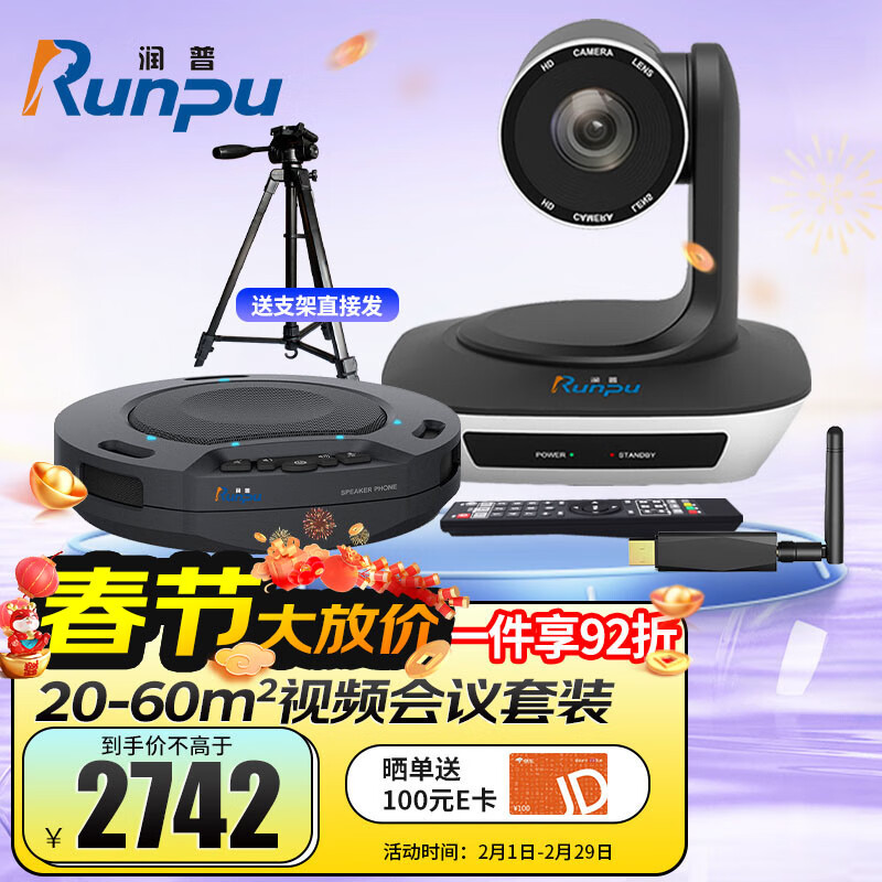 润普Runpu视频会议标准集成套餐适用20-60平米高清会议摄像头摄像机无线会议全向麦克风/软件 RP-W30价格:2980.00元!