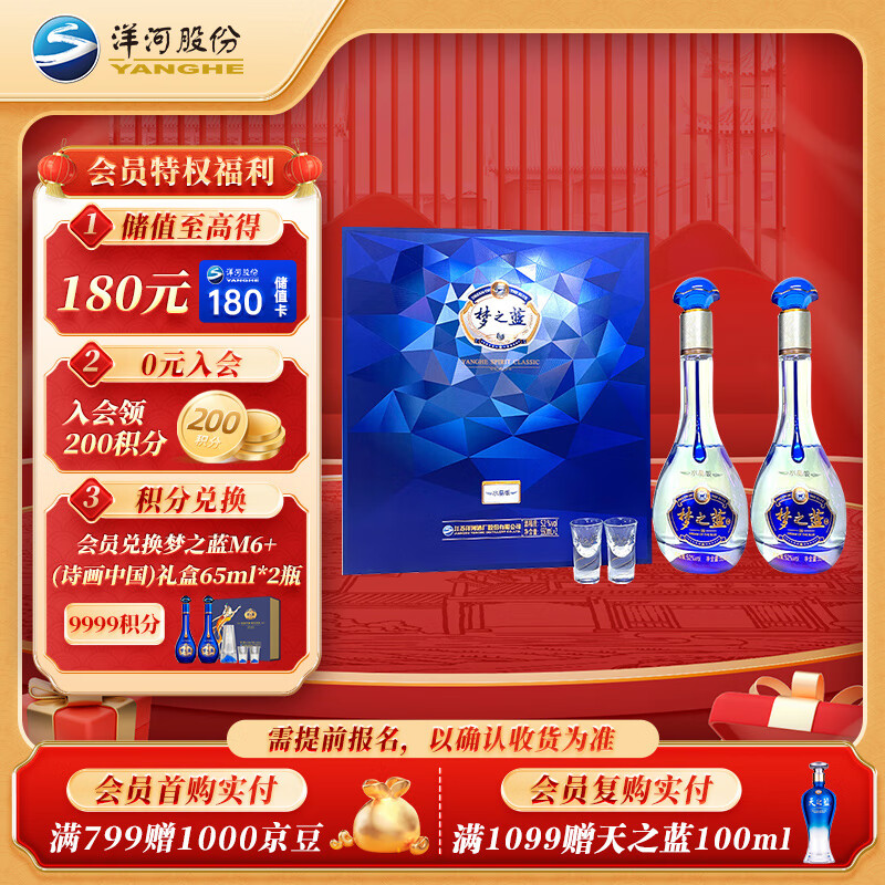 洋河 梦之蓝水晶版 52度 550ml*2瓶 礼盒装 绵柔浓香型白酒价格:1398.00元!