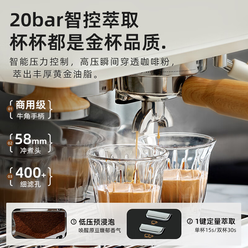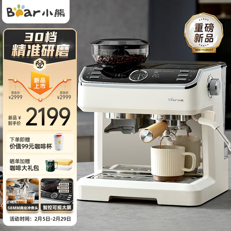 小熊(Bear)咖啡机 意式半自动家用咖啡机 研磨一体机 现磨咖啡豆手动奶泡 KFJ-E28A5价格:2199.00元!