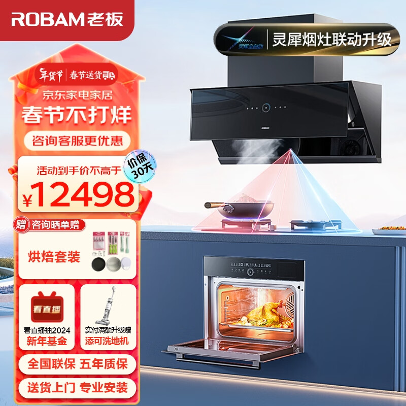 老板(Robam)厨房多件套29A9S+57B6D+CQ9062D烟灶蒸烤套装26风量抽油烟机蒸烤一体机嵌入式 (天然气)价格:12498.00元!
