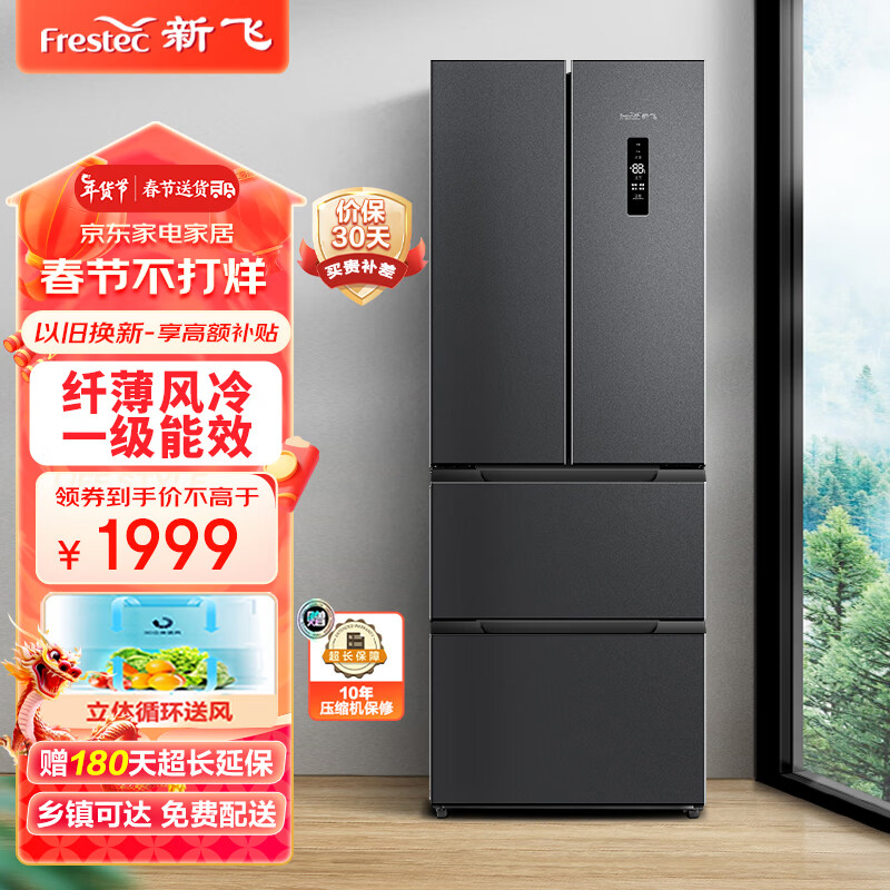新飞(Frestec)336升变频一级能效法式多门冰箱家用无霜BCD-336WK7AT纤薄多维风冷循环价格:2099.00元!