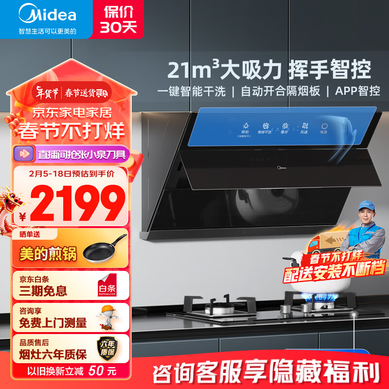 美的(Midea) 侧吸式油烟机 智能家电 21立方大吸力挥手抽油烟机灶具 免拆洗烟灶套装J39+Q330(液化气)价格:2199.00元!