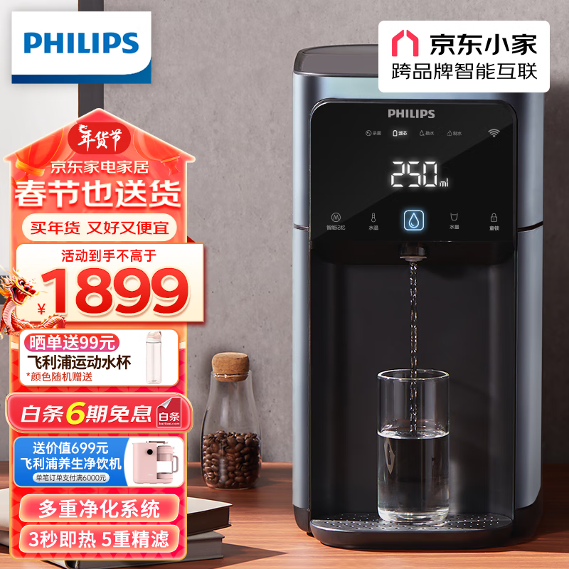 飞利浦(PHILIPS)加热净水器 家用即热式净水机台式免安装反渗透净水器直饮水机净饮一体机京东小家智能生态ADD6801价格:1899.00元!