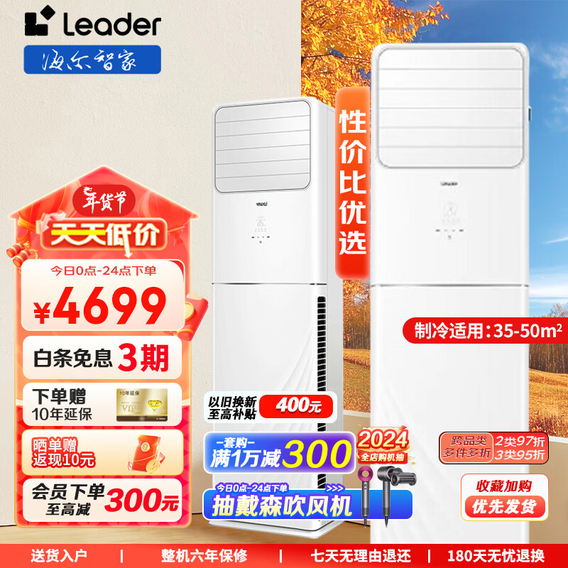统帅(Leader)空调海尔空调出品 3匹冷暖变频立柜式空调 内外机清洁大出风口远距离送风商居两用大风量 以旧换新价格:4699.00元!