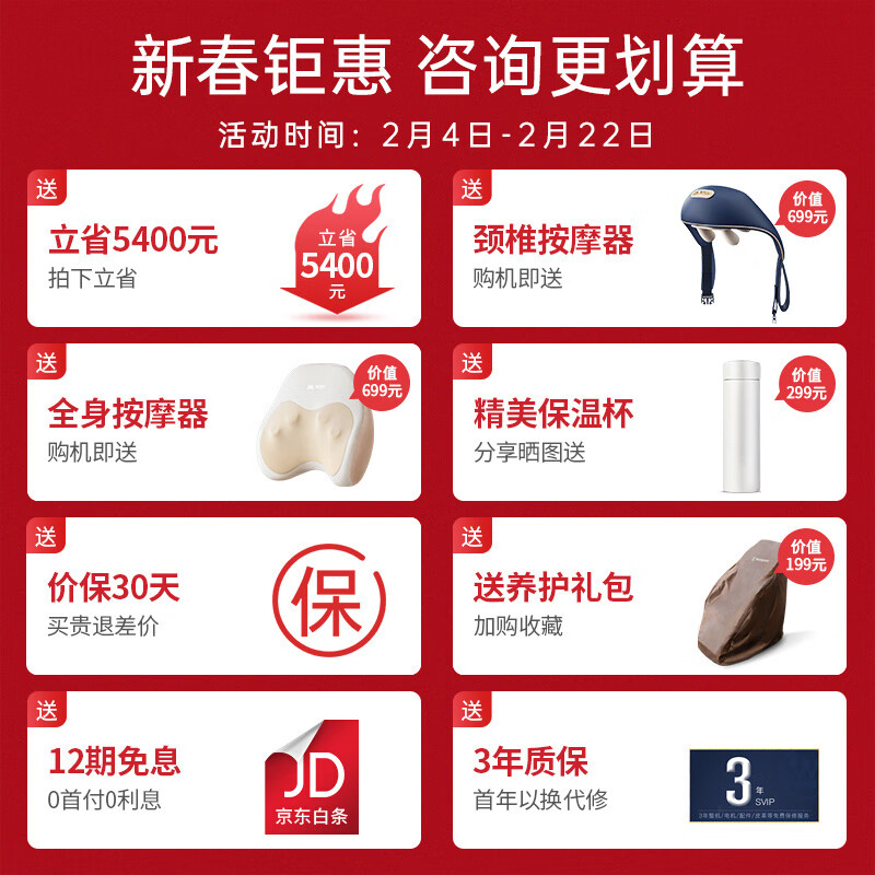功能:蓝牙音乐,扶手连动,腰部热敷