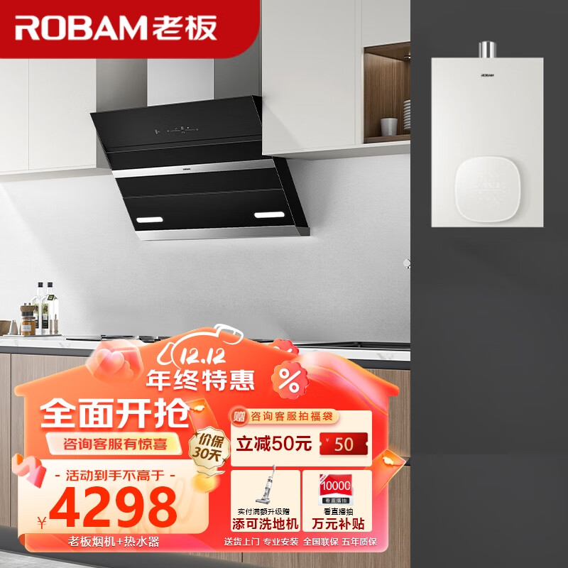 老板(Robam)吸油烟机免拆洗侧吸式21风量抽油烟机家用挥手智控 14升智能恒温燃气热水器27A3H+HT322A-14价格:4298.00元!