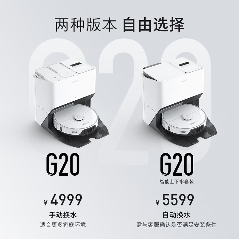 石头(roborock)G20 扫地机器人上下水新升级自动洗拖布自集尘大吸力扫拖一体机 G20水箱版价格:4999.00元!