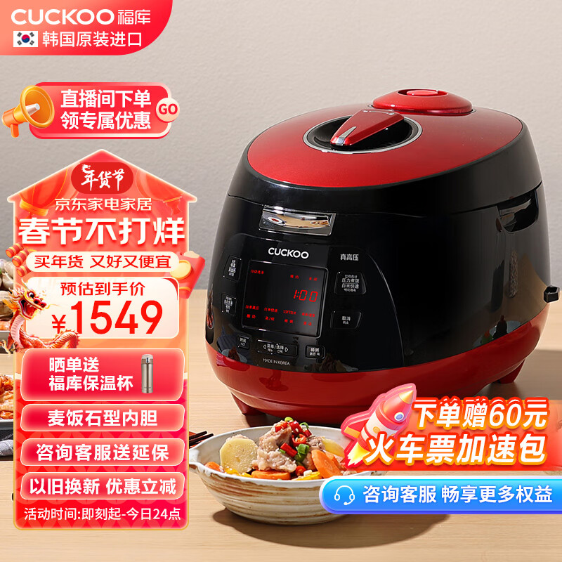 福库CUCKOO韩国进口麦饭石型内胆智能预约自动洗涤家用多功能饭煲锅5L年货3-10人CRP-M1001SK价格:1549.00元!