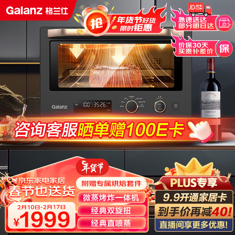 格兰仕(Galanz)铂岩系列 微蒸烤炸四合一 直喷蒸 家用微波炉烤箱 微蒸烤一体机D90Q20ESXLV-RU(B0)价格:2329.00元!