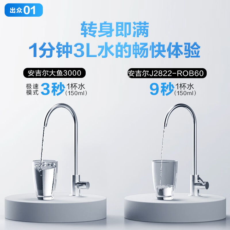 安吉尔净水器家用大鱼3000 变频极速1200G 瞬时3L/分钟 RO反渗透厨下净水机直饮纯水机J3369-ROB60T价格:2498.00元!