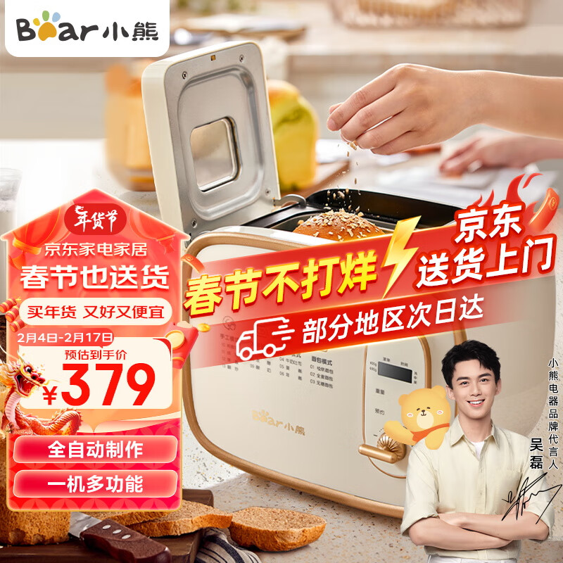 小熊(bear)面包机 全自动 和面机 家用 揉面机 吐司机 多士炉 烤面包机 智能烤面包片机MBJ-D06N5价格:439.00元!