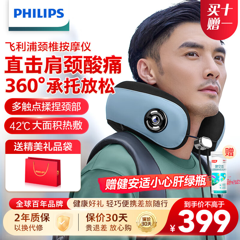 飞利浦(PHILIPS)颈椎按摩器 肩颈按摩仪物理揉捏热敷按摩枕支撑颈托 圣诞礼物生日礼物 3104N价格:459.00元!