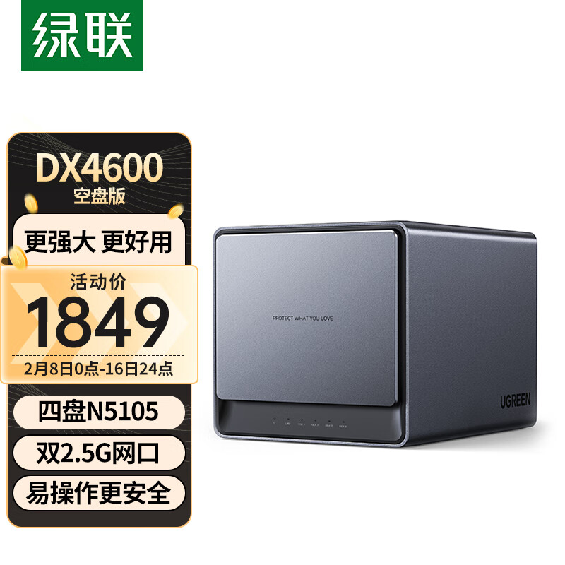 绿联 私有云DX4600 四盘位Nas网络存储个人云硬盘服务器相册备份文件同步 手机平板扩容适用iPhone15价格:2799.00元!