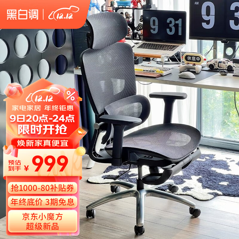 黑白调(Hbada)E2 人体工学椅电脑椅子办公椅可躺宿舍学习椅家用旋转电竞椅 高配价格:1499.00元!