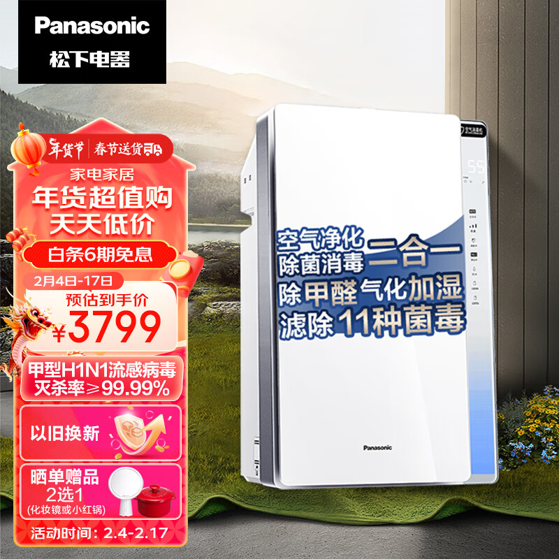 松下(Panasonic) VJL75C2空气净化器除甲醛 空气消毒机卫健委备案 去除甲流 无雾加湿 家用除菌 除过敏原46平米价格:3899.00元!