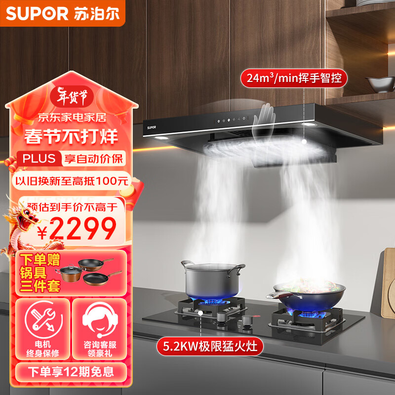苏泊尔(SUPOR)抽油烟机燃气灶套装 欧式烟灶套装 900Pa变频风压挥手智旋干洗吸油烟机DT39+DB70天然气价格:2499.00元!