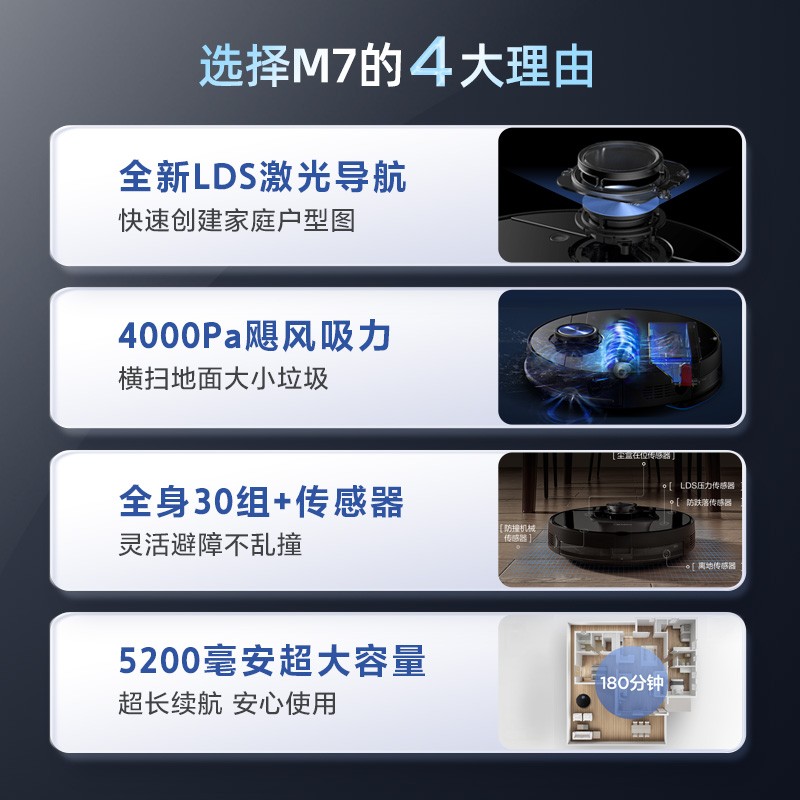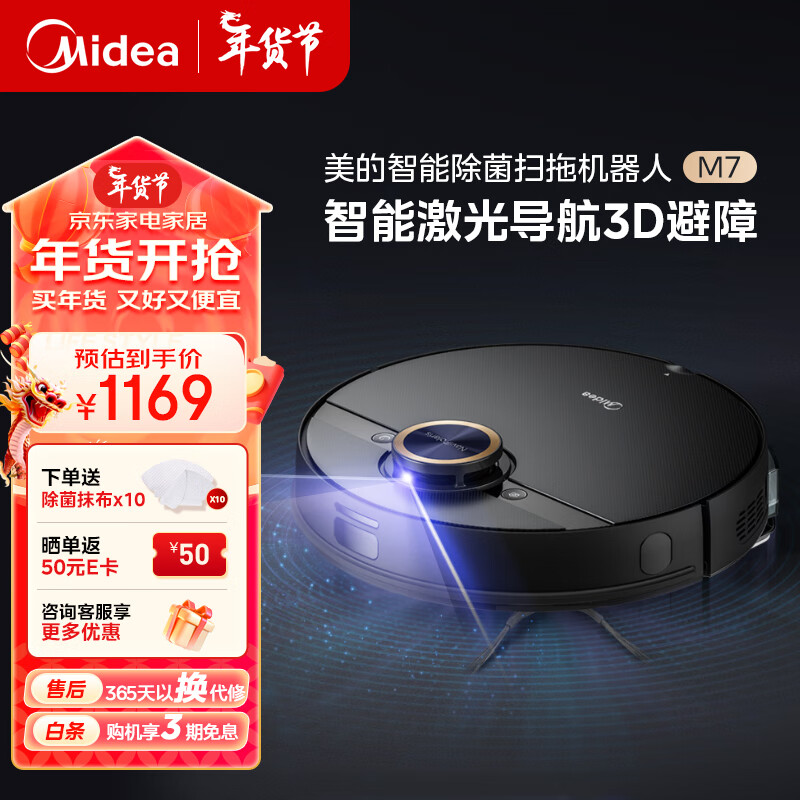 美的(Midea)扫地机器人扫拖一体M7 扫拖一体机器人 家用扫地机拖地机 曜石黑价格:1269.00元!