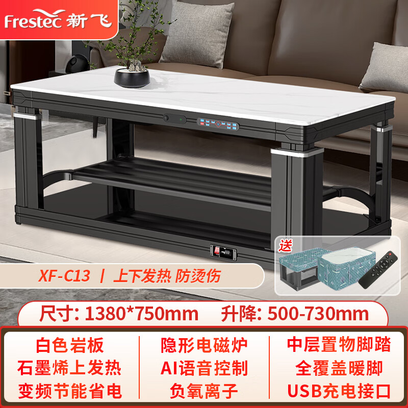 新飞1.38米电暖桌石墨烯发热烤火茶几多功能升降语音控制电暖炉家用变频节能取暖桌长方形烤火桌XF-C13价格:1799.00元!