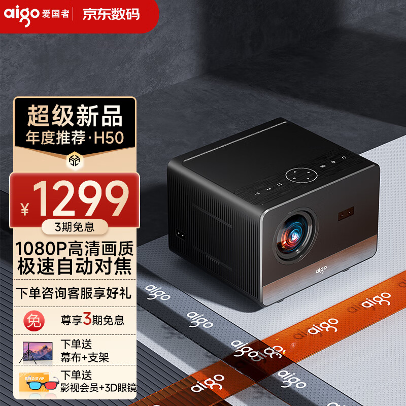 爱国者(aigo)H50 投影仪家用办公投影机智能家庭影院(立体环绕音响 全局自动对焦 自动梯形校正)价格:1399.00元!