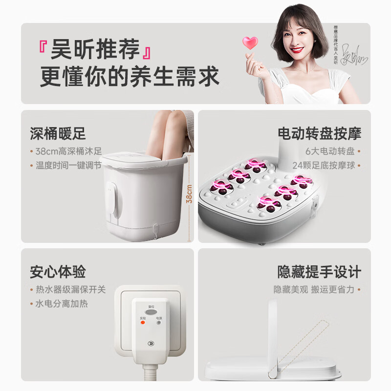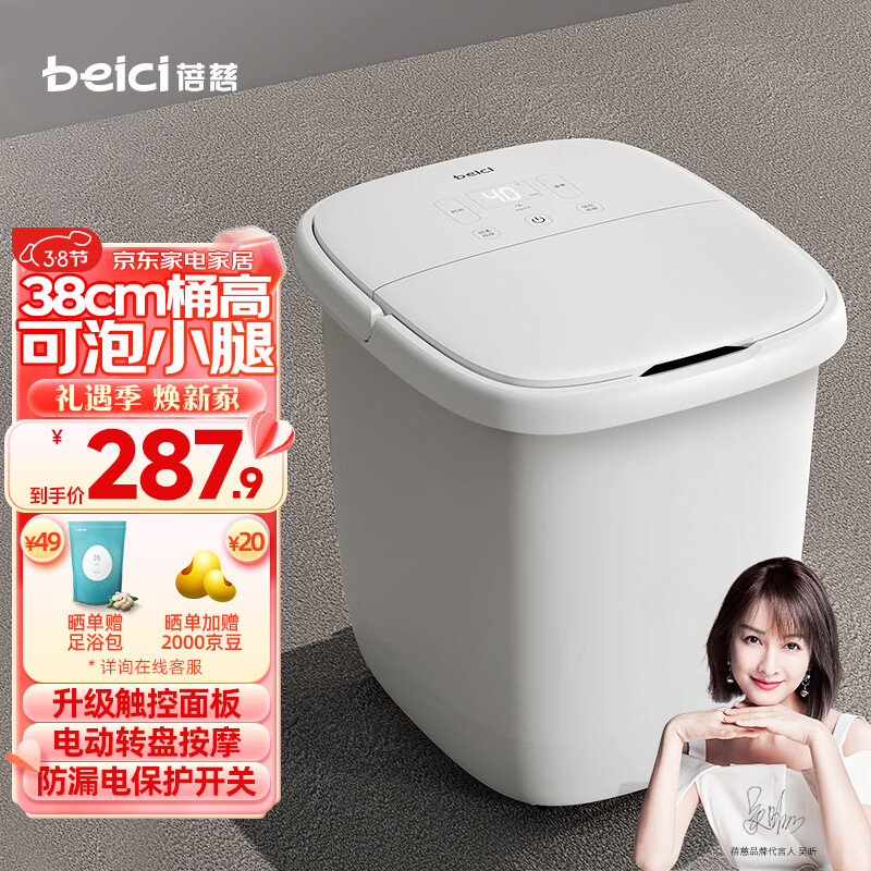 蓓慈(beici)小白Pro泡脚桶全自动按摩足浴盆智能洗脚盆电动恒温加热深桶生日礼物送父母 小白Pro(电动转盘+38cm桶高+漏保开关)价格:287.90元!