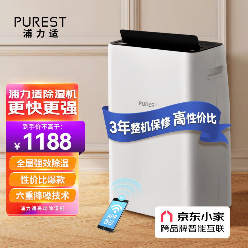 浦力适(PUREST) 除湿机/抽湿机 22升/天衣物干燥吸湿器 家用抽湿器 京东小家智联 多重降噪 干衣机价格:1118.00元!