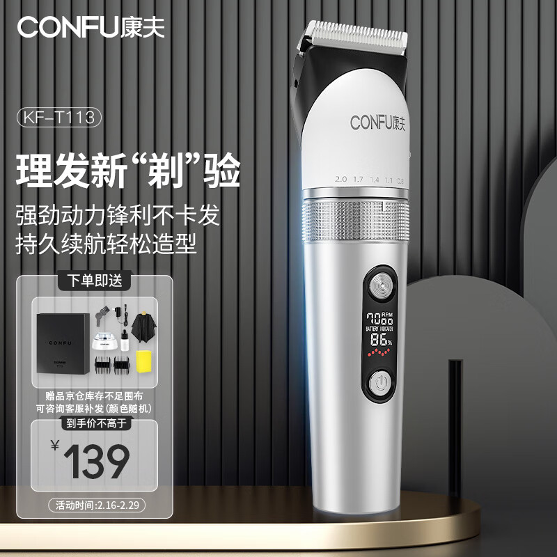 康夫(CONFU)座充电推子剃头理发器专业理发工具全套理发店专用成人电动推剪发廊儿童理发剪刀KF-T113价格:139.00元!