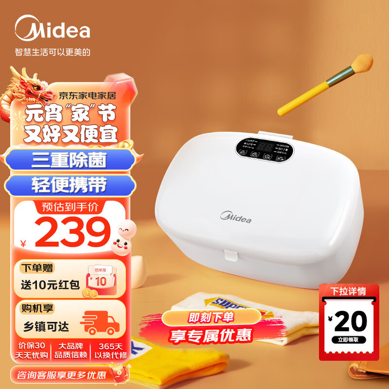 美的(Midea)烘干机小型 内衣内裤紫外杀菌机 家用迷你婴儿衣物袜子 便携式烘衣机取暖器 干衣机MGH04-02VYW价格:239.00元!