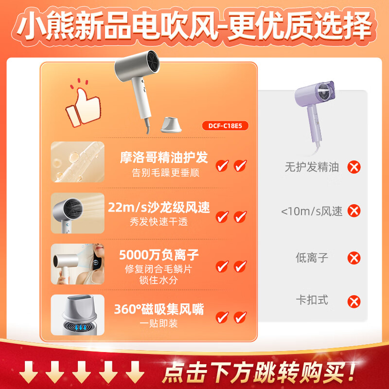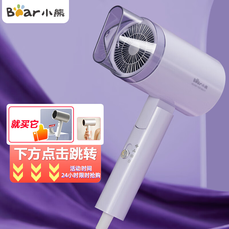 小熊(Bear)电吹风机 电吹风家用 吹风筒大功率负离子不伤发 冷暖风卡扣风嘴可折叠 节日礼物DCF-B16R1价格:118.00元!