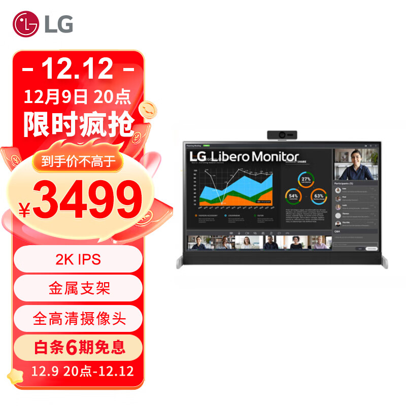 LG Libero 27英寸 2K IPS 1000:1 拆卸高清摄像头 内置音箱 旋转 便携办公 视频会议 魔动屏 显示器 27BQ70QC价格:3499.00元!