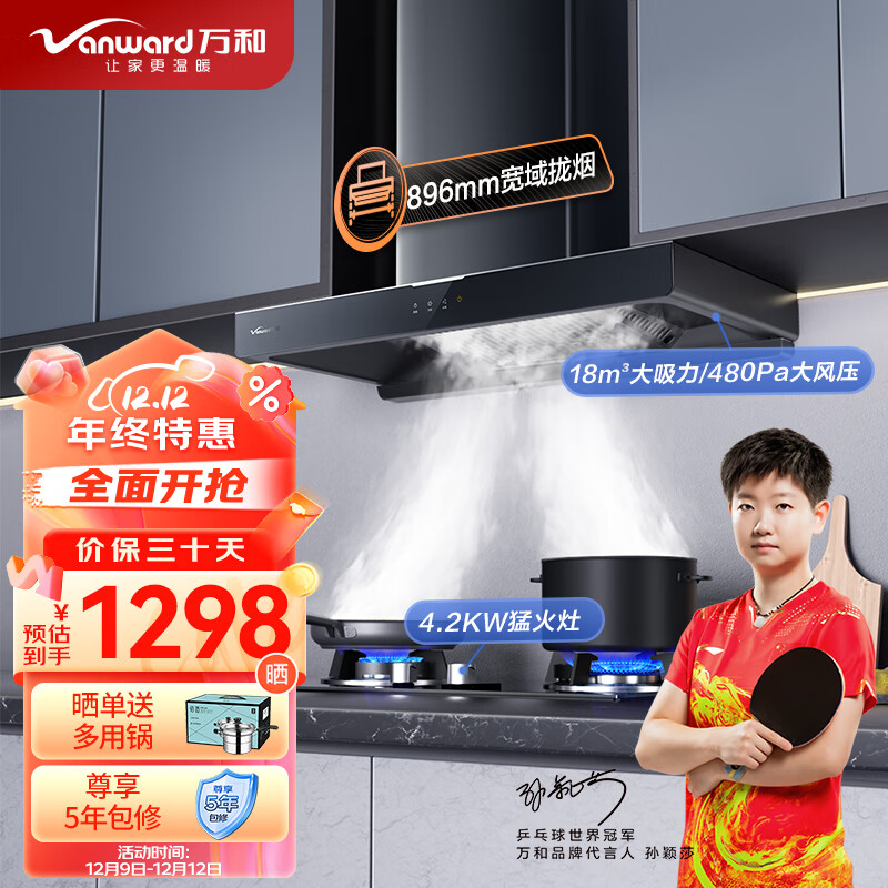 万和(Vanward)家用抽油烟机 吸油烟机 欧式18立方米大吸力烟灶套餐触控油烟机X518A+B3L20(液化气)价格:1298.00元!