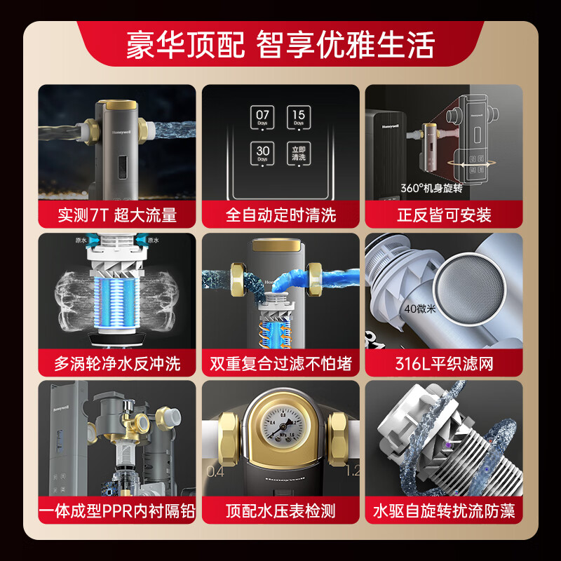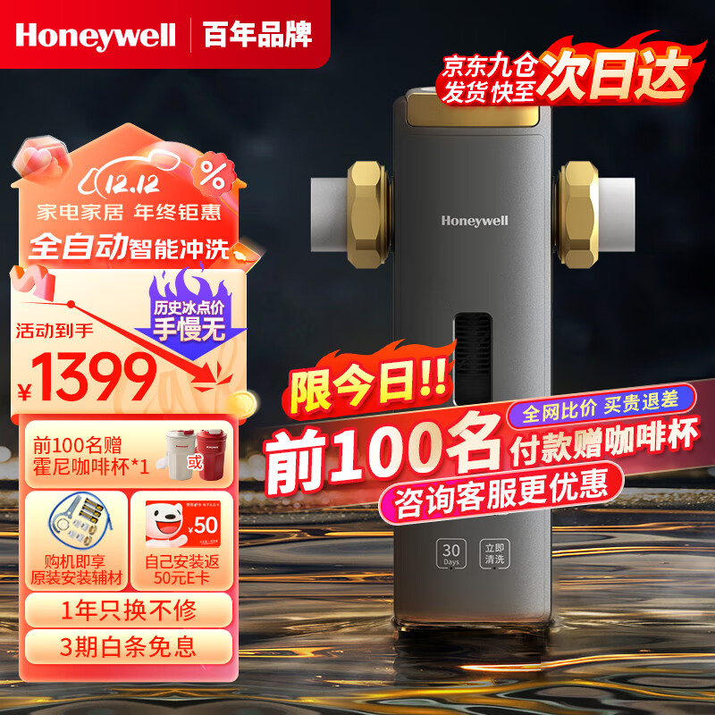 霍尼韦尔(Honeywell)全自动前置过滤器 表监控 自动反冲洗 半万向前置 全屋家用净水器 40微米精滤 PFF91T12-EC价格:1399.00元!