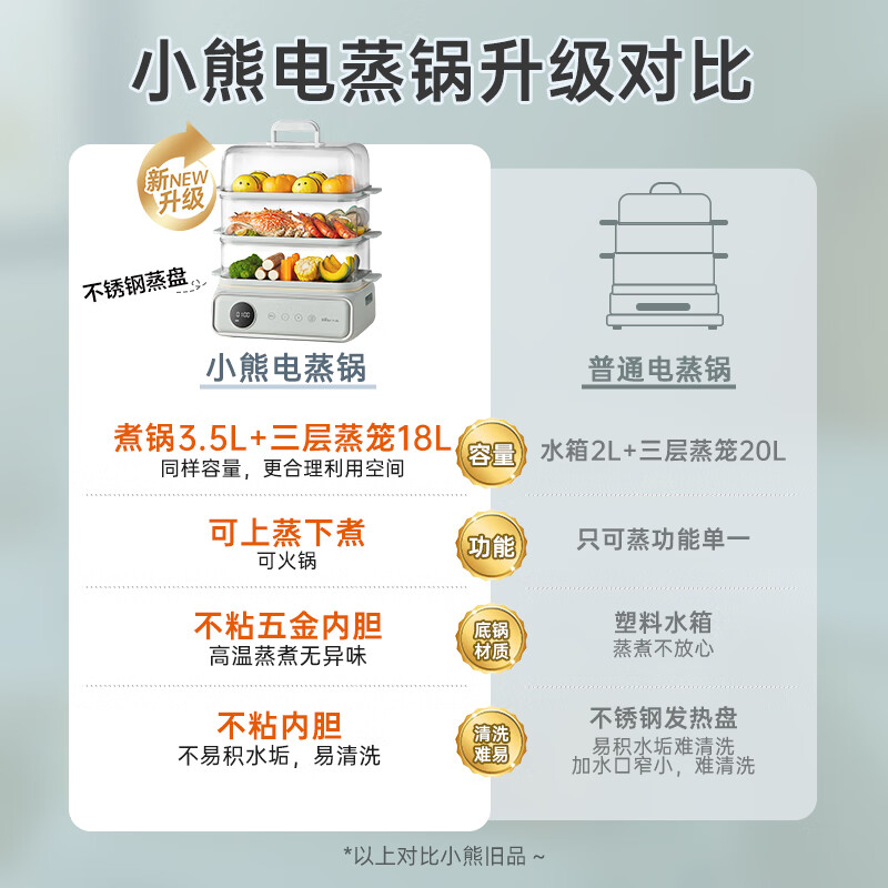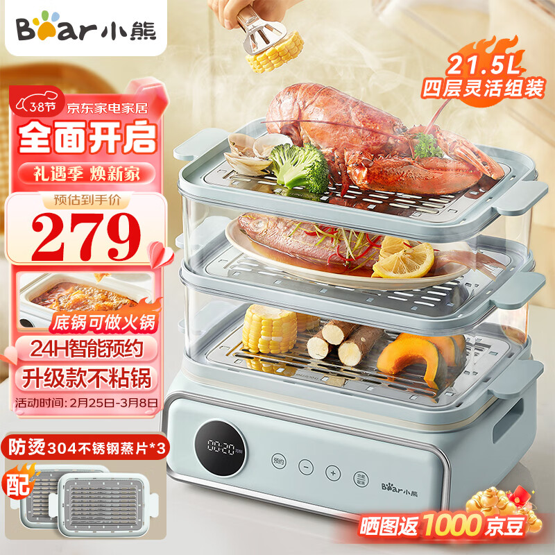 小熊(Bear)电蒸锅 蒸蛋器 蒸锅家用 电蒸笼 多功能早餐包子电热煮锅 大容量可预约定时不锈钢蒸盘DZG-P20W7价格:278.00元!
