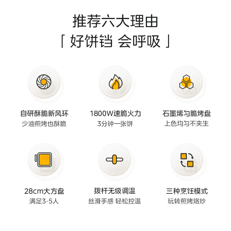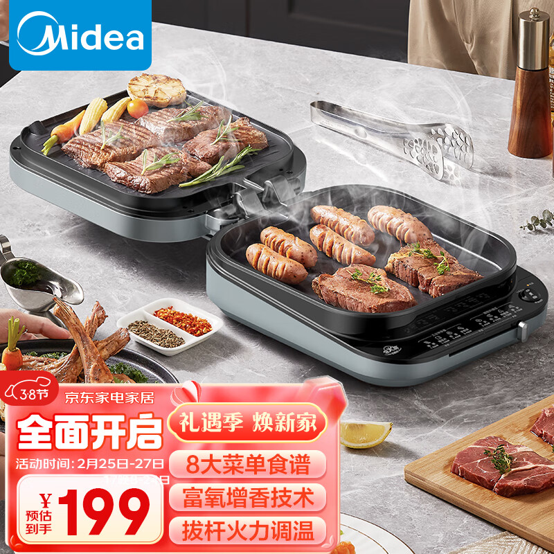 美的(Midea)麦香速脆家用电饼档双面加热大口径大火力煎饼锅加深智能烙饼锅三明治早餐机电饼铛JKE3080价格:199.00元!