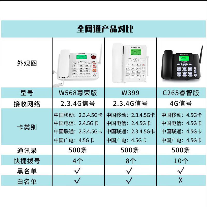 中诺W568通4g5g老人插卡座机电话机SIM无线插卡电话机支持电信移动联通广电四网4G家用办公黑色价格:258.00元!